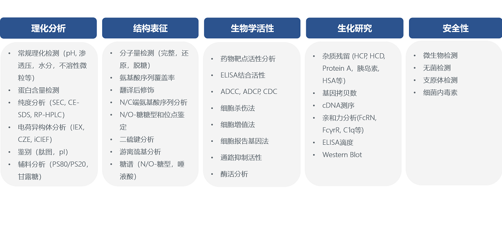 分析方法開發(fā)團(tuán)隊擁有先進(jìn)的儀器設(shè)備,具備豐富的單抗,雙抗和重組蛋白等pCQA分析與監(jiān)控的經(jīng)驗,為新藥和仿藥研發(fā)以及IND/BLA申報提供一站式全流程服務(wù),包括: